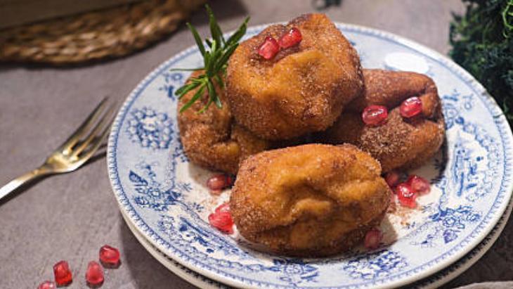 Hamuru için 3 su bardağı un, 3 yemek kaşığı tereyağı (soğuk), 1 yemek kaşığı elma sirkesi, ¾ su bardağı soğuk su gerekiyor. İç harcı için 2 adet cennet hurması, 1 adet elma, 1 adet muz, 2 yemek kaşığı toz şeker, ½ çay kaşığı tarçın, ¼ çay kaşığı toz zencefil, ¼ çay kaşığı muskat cevizi rendesi kâfi olacak. Kızartmak için de ½ su bardağı sıvı yağ ve son olarak üzeri için ½ su bardağı toz şeker, 1 tatlı kaşığı tarçın gereken gereçlerdir.