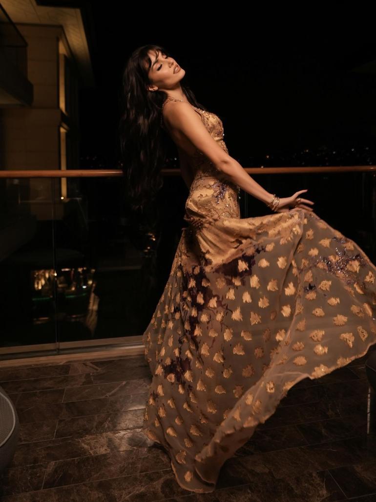Erçel, çok ünlü bir markanın dizaynını giymeyi tercih etti. Erçel, tamamı taşlı elbisesini toplu saçlarla tamamladı. Takı olarak ise şık küpeler kullanan isim, moda ikonlarından da tam not almayı başardı.