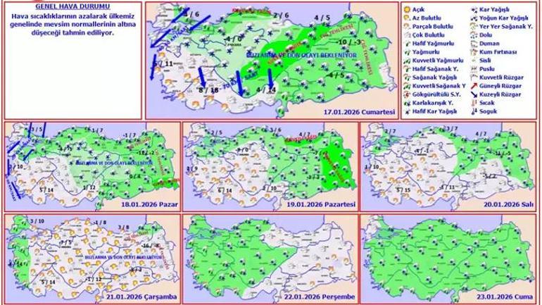 HAVA SICAKLIĞI: Hava sıcaklığının, iç v batı bölümlerde 4 ila 6 derece azalacağı, öbür yerlerde kıymetli bir değişiklik beklenmiyor.