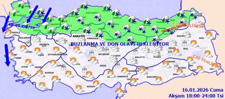 Bu süreçte, Trakya, Marmara’nın doğusu, İç Ege, İç Anadolu, Akdeniz’in iç kesitleri, Karadeniz’in iç kesitleri, Doğu Anadolu ile Güneydoğu Anadolu’nun yüksek kesitlerinde kuvvetli buzlanma ve don olaylarının görülmesi bekleniyor.