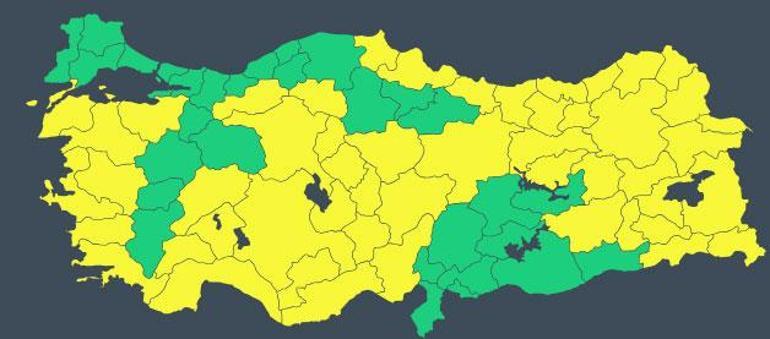 MGM, Çorum, Amasya, Tokat, Hatay, Kilis, Osmaniye, Gaziantep, Kahramanmaraş, Adıyaman, Şanlıurfa, Mardin, Malatya ve Elazığ dışındaki tüm kentleri sarı kod yayınlayarak kuvvetli yağış, fırtına ve çığ tehlikesine karşı uyardı.