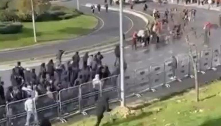 Atatürk Olimpiyat Stadyumu etrafında iki grup taraftarları karşı karşıya gelince kelamlı atışmalar arbedeye dönüştü.